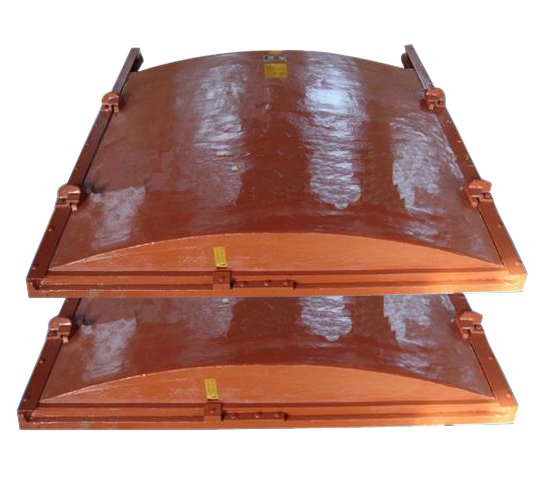 門(mén)體一般采用面板與加強(qiáng)肋的結(jié)構(gòu),面板可做平面或拱形。門(mén)體一般整體鑄造和機(jī)加工,但尺寸較大的可采用分塊組成式。門(mén)體上一般采用整體式金屬止水,兼作支承滑塊,金屬止水用同材料制作的沉頭螺釘緊固在門(mén)體上,螺釘頭部與止水工作面一起精加工,一些尺寸較大的也可“P”形橡皮止水。